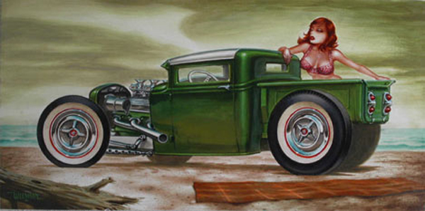 Here’s one for the metal-heads. The story behind this hand built masterpiece starts with a piece of artwork, and finishes the same way. The drawing pictured below was purchased at a car show, then a few months later the decision was made to build the car in real life out of aluminum. I know I sound repetitive when I utter words such as “craftsmanship”, “quality” and “second to none”, but this build really is all that and more. The pictures speak for themselves.