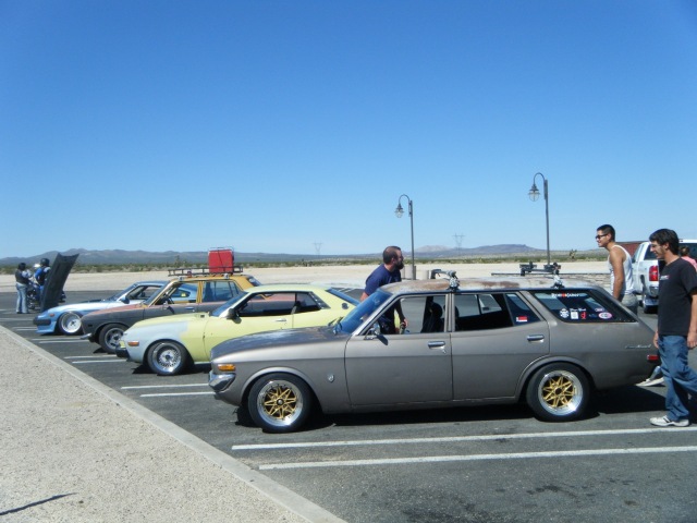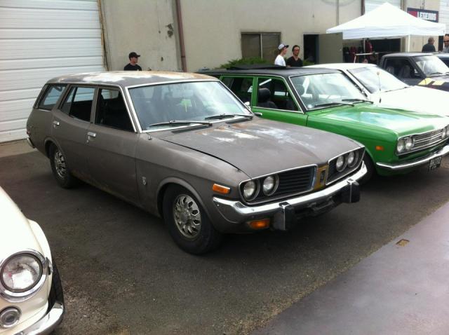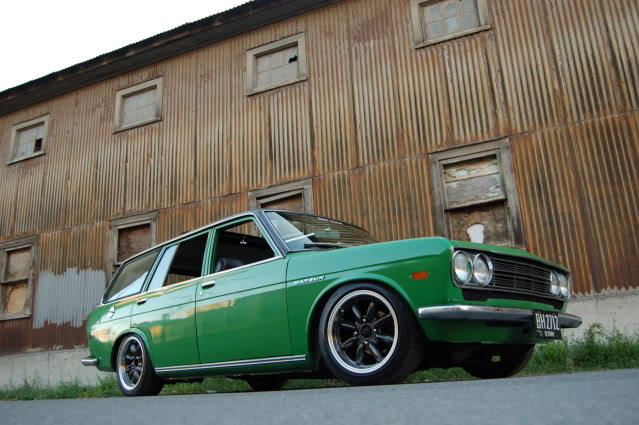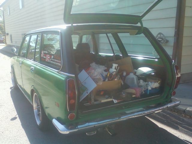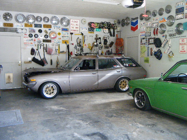 Stock as a rockPerfect for summer – rag-top roof!In the quest for low, the tunnel was cut out……and re-made in a higher position, using metal cut from the roof for the rag-top, talk about recycling.OEM wheels from a later model, combined with smaller tyres look a treat on the dattoCustom-made carby airbox.This ‘aint no show car! The green ‘goon gets used like a wagon should!Polished & pretty for the camera.It takes a person with vision to look at this and picture a cool car as the end result.Very agricultural!A substantial drop always works wonders (not to mention removal of the canopy)Home-built bag setup.Tank + compressor hidden behind seats.Enkei 92s, wheels maketh the car.A vinyl sticker was used as a mask, then the logo was sanded out of the paint, with Duane’s son helping out.So. Awesome.The latest project, Toyota Corona wagon.As usual, ride-height is one of the first issue to be addressed.A fresh set of wheels goes far.Cleaned up front end + yellow tinted hi-beams.One thing that isnt’ cool about classics is their brakes, a modern upgrade is always a good idea.Having a donor car means you can mix and match all the best parts from both your rides.Classics always look good with their peers.Back in the garage “where the magic happens”, with Duane’s other goon.