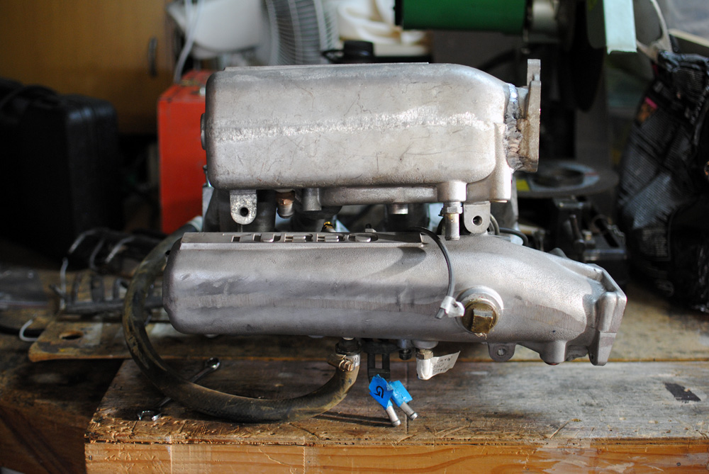 This shot shows the difference in size between the DR30 manifold (bottom) and S12 manifold (top). The runners are also shorter, but it was a bit hard to show that in a photo.