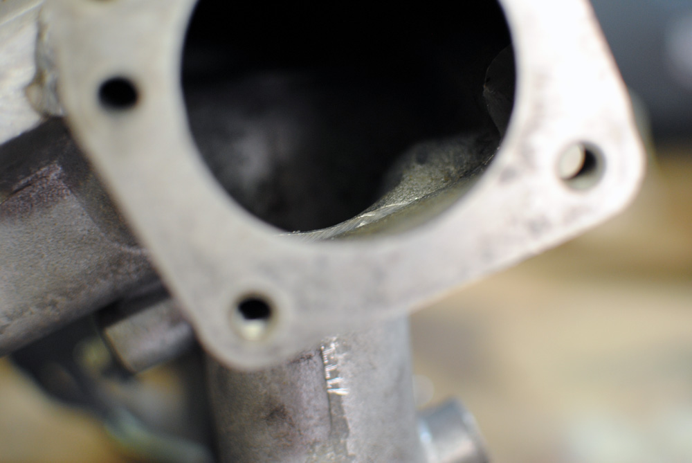 Since we had cut and rotated the throttle body flange 180 degrees, some things didn’t line up very well on the inside and wouldn’t do the airflow any favours.