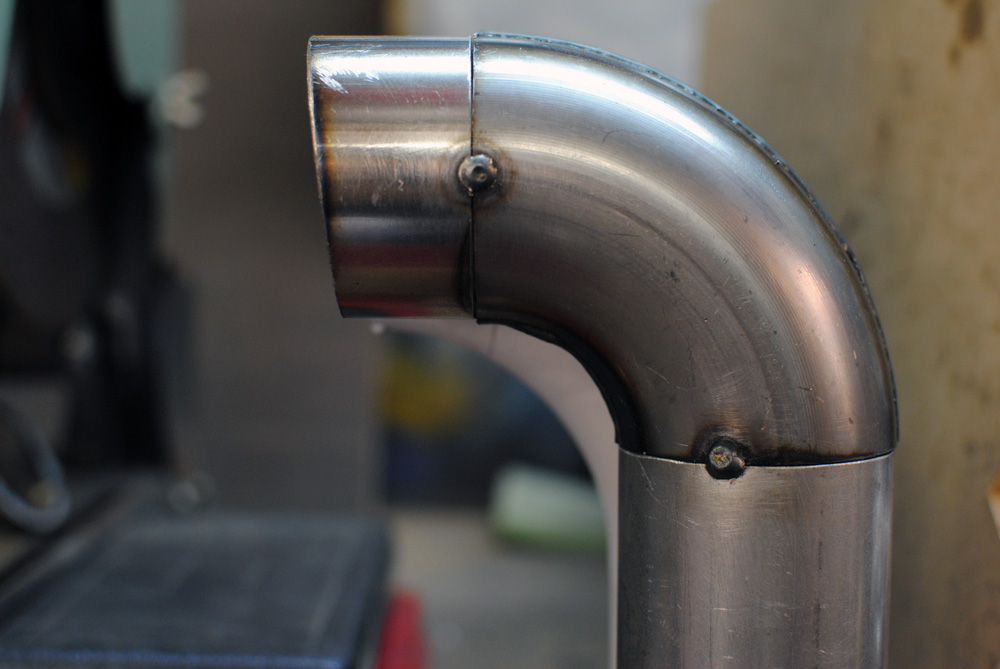 On the ends of both of the pipes I added a few series of tacks to stop the silicone hoses blowing off under pressure.