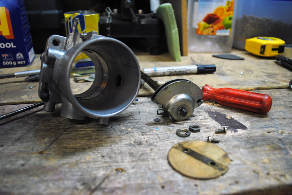After removing the old gasket with a razor blade, I started spraying every nook and cranny with carby cleaner and degreaser…
