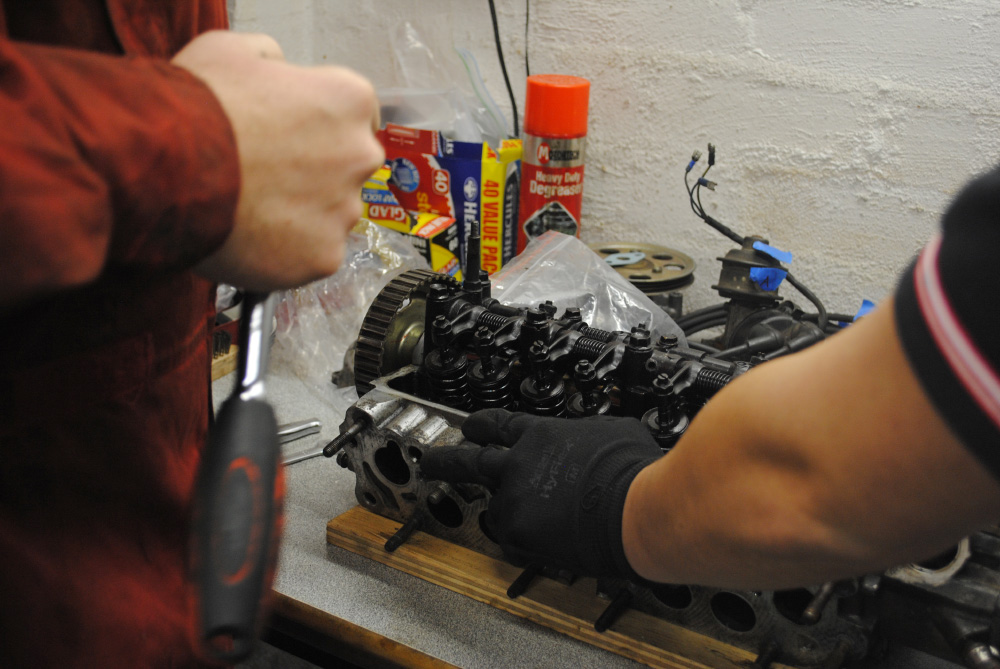 A couple of friends of mine (the same guys I went to Winton with) have embarked on a joint project car. The car in question is an obscure little Honda, and it’s not a Civic. Nope, it’s even better, it’s a City Turbo II. If you’re unfamiliar with these awesome little cars, you can read up about them on the Wiki page here. All you really need to know is that it’s small, it’s turbo, and you can fit a Motocompo in the boot. The other night I popped around for a visit while Tony and Ryan were wrenching away and took some photos of the goings on. As usual, click for larger versions.