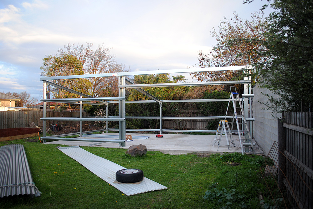 And so begins Part 3! In the last post, the concrete had just been poured and the shed was delivered in pieces. When I first started dreaming up this garage, the plan was always to build it myself with the help of my dad and some mates. Why? Well, to keep the cost down, of course. But also because we can! Or so I thought. Once the shed was delivered and we got a feel for just how big it was and how many pieces there were, the thought of DIY started to become daunting. Also, I wanted the thing to be built as quickly as possible (who wouldn’t?), so the idea changed to outsourcing the work. Until…