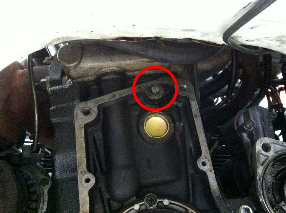 A very important part of the swap is making sure that the two locating dowels on the engine correspond to the gearbox, as they keep both items aligned with each other. This is the lower one and it lines up without modification. As you can see, the clutch and flywheel have also been removed, the reason will be explained soon.