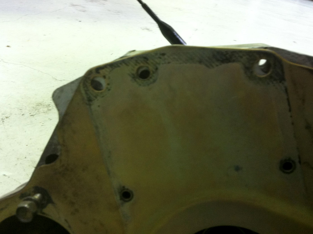 This is why we removed the clutch and flywheel, so we could get to the engine plate.