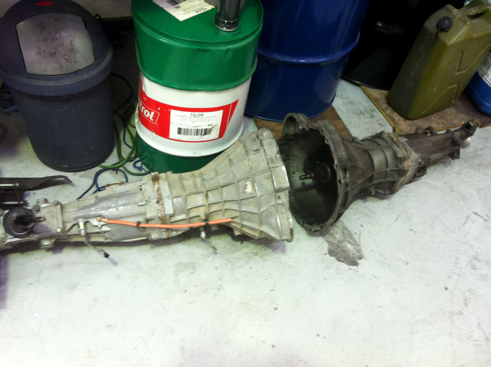 I was standing in the garage today, looking at my car with a bunch of the engine bay torn apart, planning in my head how I was going to document the activities in my next post. Then it struck me, I still hadn’t posted about the last thing I did; retrofitting an RB20DET gearbox to the FJ20. The FJ20 uses a 5-speed gearbox which has one niggling problem, they have a tendency to crunch when changing gears in higher rpm. Apart from that, there was nothing wrong with it, no whining noises, never hard to find a gear, never popped out of gear, but that didn’t stop me from upgrading when I learnt that the RB20 gearbox bolts up with minimal mods…