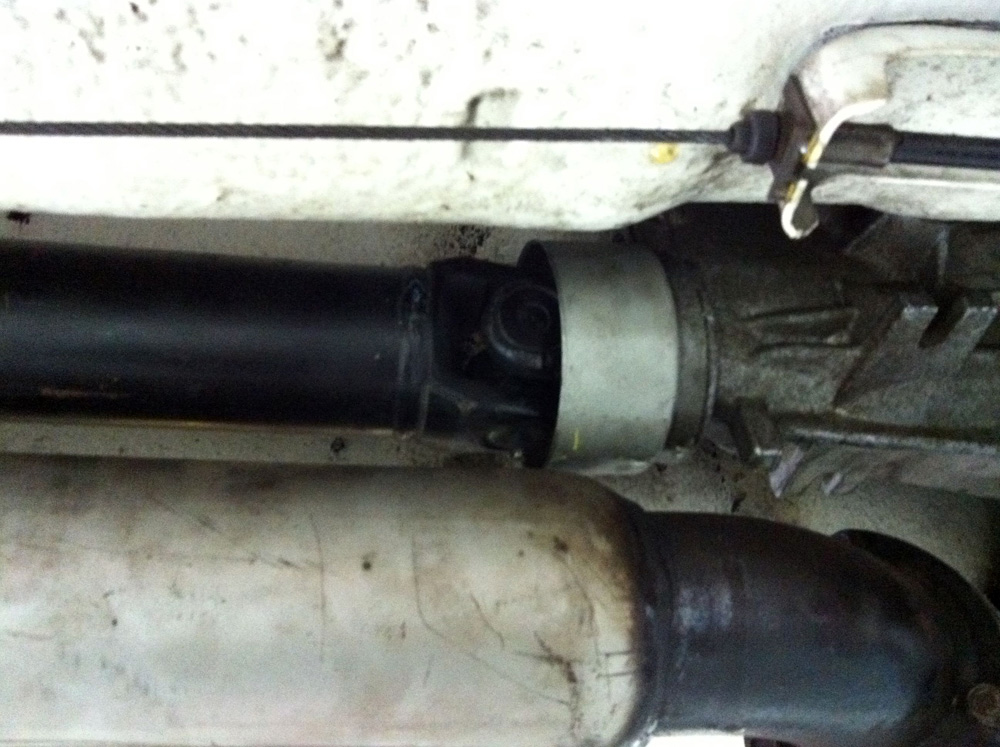 The tailshaft originally had a dust cover, since the FJ box didn’t have one. But as the RB box has it’s own cover, one of them had to go, so we trimmed the cover off the tailshaft.