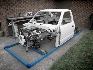 Do you follow Nigel’s blog, Engineered to Slide? Well you should, he’s the crazy DIY fabricator behind two awesome S13 Nissan builds, one of which was part of the starting line-up of posts I made when this blog debuted. He’s just started a new project which I think you’ll be interested in, a hollowed-out Toyota Hilux ute/pickup being built around a custom chassis with a drive-line and suspension setup donated from an S15 Nissan Silvia. I’m very excited about this build because I know from Nigel’s previous work that it’s going to be finished, and finished to a high standard, this guy doesn’t muck around! Make sure you keep up with the progress by following the updates on his blog, I’ll be sure to post another update here as the build progresses further.