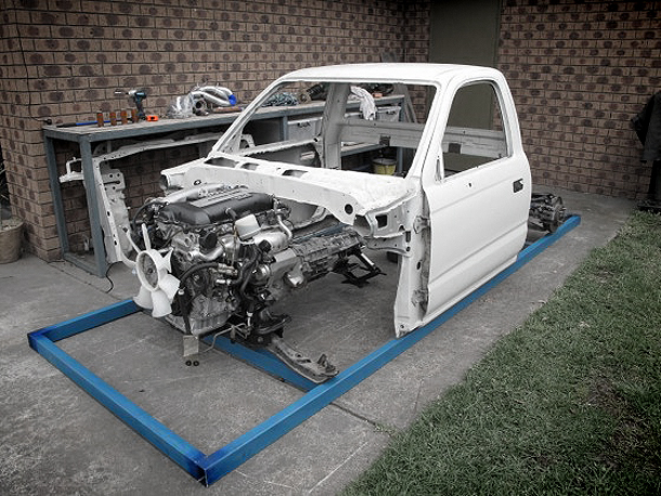 Engineered To Slide; there’s a good chance you already follow Nigel’s blog and know all about his impressive two and four wheeled projects, both past and present. When I first started this blog, I launched it with a handful of builds already published from the get-go, and one of those was the ETS S13 Silvia, knowing that I just had to include something from his stable when I launched Build Threads. Â A couple of years later I was super excited to see his new project taking shape – a scratch-built Toyota Hilux with Nissan S15 running gear – and just had to make a post about it when it wasn’t yet much more than a mockup. After many updates and blog posts over the span of a few years, I had absorbed every image and every word Nigel had posted about his one-off creation. Now here we are, years later, and it’s still just as impressive as it was when it was first completed. Nigel has just posted a retrospective post on the journey with 100 images of his choice, a perfect opportunity to re-live the build…