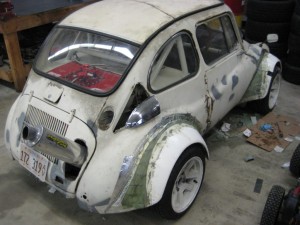 It’s time for another memory test. Who remembers the rear-engine V6-swapped Geo Metro Lemons racer that was featured almost 5 years ago? Well, the same guys are back again with a new death trap, this time a Subaru 360 micro-car packing a Honda Fireblade bike engine (sadly no longer eligible due to new rules implemented mid-build). I present to you, the Firebug!