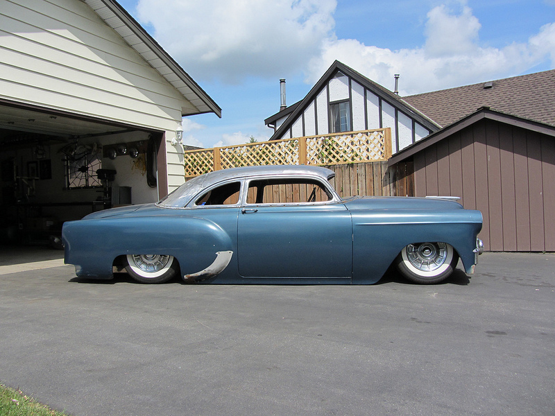 Back in November I made a post on the Facebook page noting the abundance of European and Japanese rides on the front page. I asked you if you wanted to see some American iron, and the response was overwhelming, so I featured the Bagged 52 Chev. But you were duped! The picture of the car I posted when I asked the question wasn’t actually the 52 that I ended up featuring, it was this gorgeous airbagged and chopped 1953 Business Coupe. So put some time aside, make yourself comfortable, and get ready for an extremely cool car with some top notch DIY metal work.