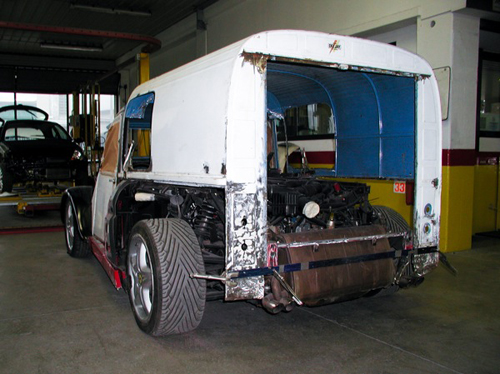 I found this interesting piece of machinery on Wheel Whores. What is it exactly? Well, its a Citroen 2CV van plonked onto a stripped Ferrari 355 chassis…