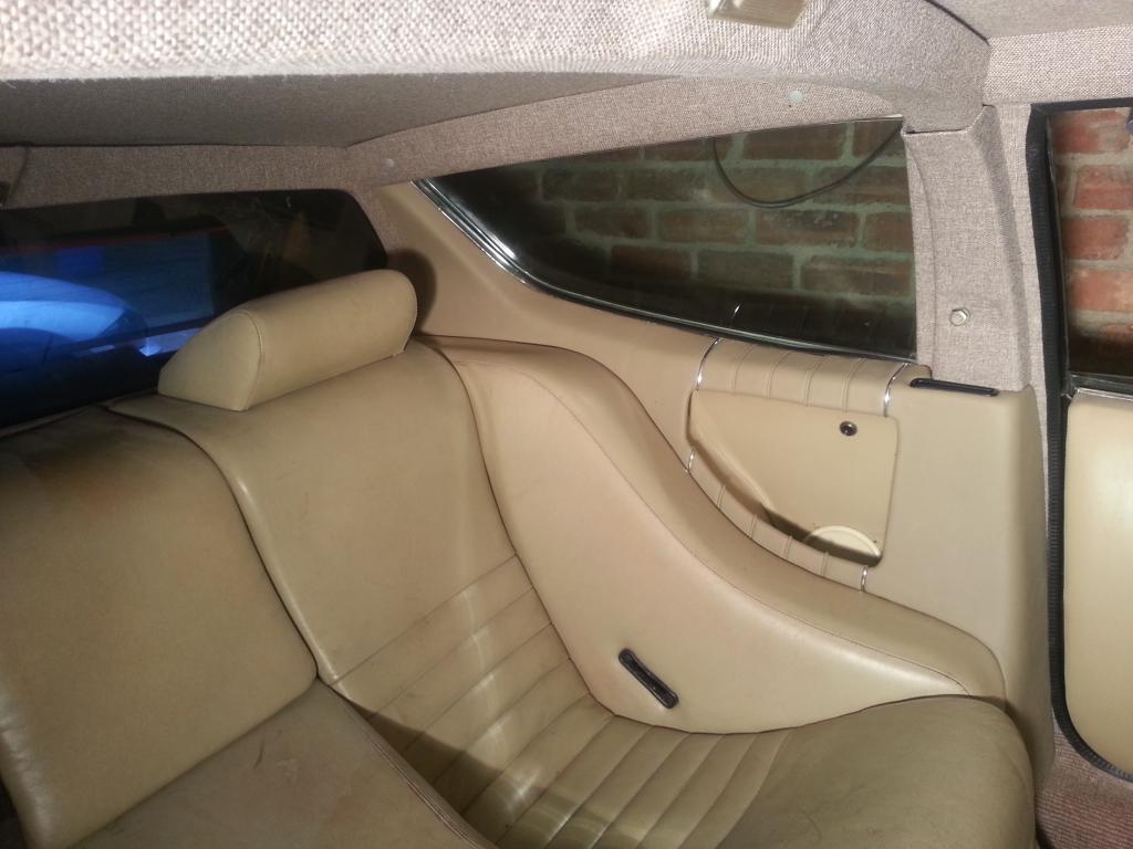 The final installment of the Lotus trio is this red Elite, originally found in a very sorry state.It’s the only one to keep it’s original powerplant. By the way, the Elite is front-engined.The Elite differs from the 2x Esprit’s by using air shocks instead of air bags.Raised shock towers were required to get the desired ride height.Off the jack stands for the first time, smiles all ’round.A wrinkle-red rocker cover is the fastest way to my heart. New wheels set off the shape of the car.A nice buff job and a quick release of it’s air lines sees it ready for the show hall.What I love about this Elite is the delectably retro interior overhaul, starting with this donor set of seats and panels.The rear trims are actually from a Lotus Elcat and need some surgery to fit the Elite. Check out the new custom headliner that Charlie had already installed at this point.Love that fabric!Even the carpet gets a brown/tan overhaul.The completed hybrid rear trims finish off the welcoming interior.One more of the exterior to round off the post. Lovely!