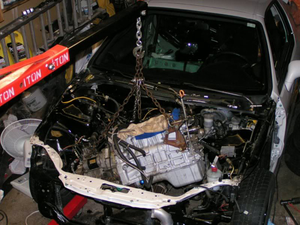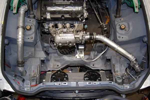 The Honda CRX Del Sol…2-door, targa top, good looks, VTEC “power” etc et. But there’s one thing wrong, they’re powered by the wrong wheels. White-Sol on the Honda-Tech.com forums has rectified this by converting his CRX to TWIN-engine & all-wheel drive using 2x Honda H22 turbocharged powerplants.