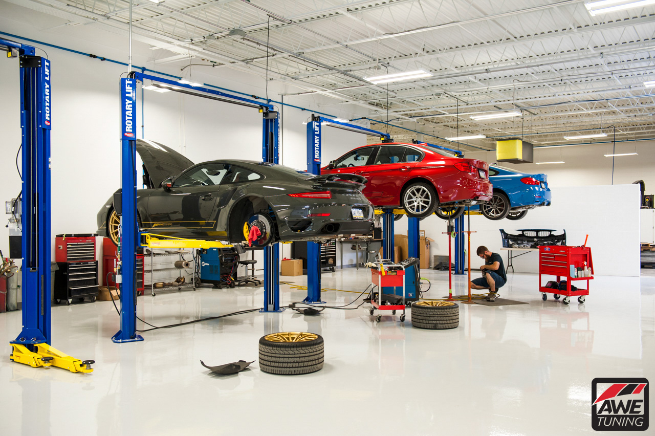 If you’ve followed the previous garages I’ve featured, you’d notice a theme. I tend to like the ‘everyday’ car-guy garage, something a bit gritty with used cabinets, reclaimed timber, all the warm and fuzzies etc etc. But I always say that it’s nice to see how things are on the top end of the spectrum, and that’s exactly where this brand new workshop belonging to AWE Tuning lies. Holy moly!