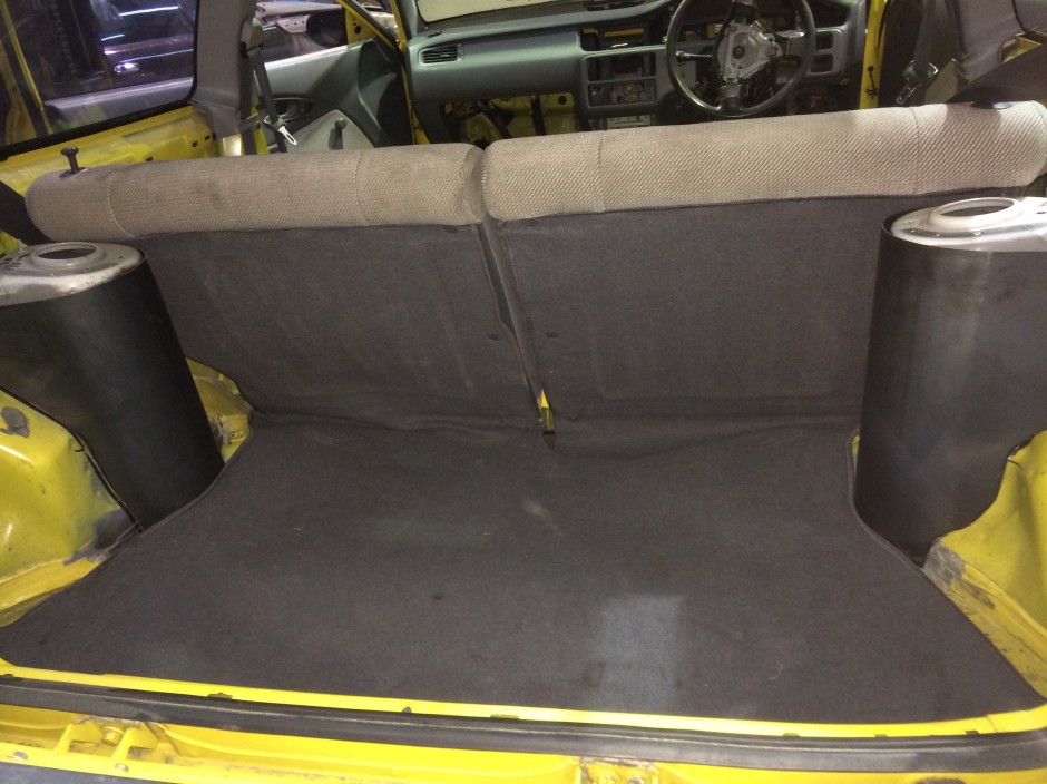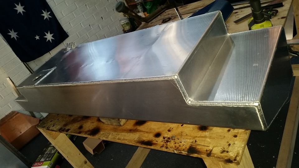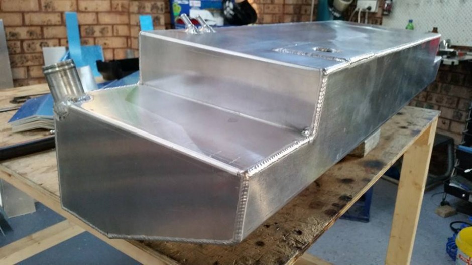 To meet engineering standards we still kept the tank 200mm from the back (metal) of the car, Grub also put his skills to use by fabricating a rear crash bar with 3 crumple zones built in. We will show you more of this feature once the build is complete. The tank fits like a glove, what we were worried about is that we didn`t have enough room to fit a tank big enough to drive on the street. Guna Welding and fabrication got this tank in the space we gave him and managed a massive 44L which is 15 liters more than we thought possible. Check out his Facebook page for the full build on this and other tanks. He is simply the best in the business.