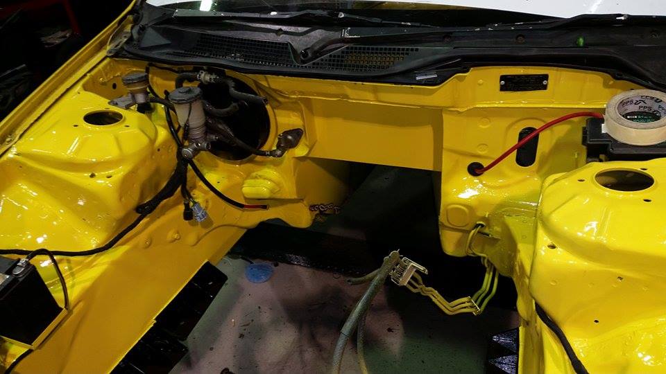 We cant give away all our secrets, but once we finished the firewall it was time to give the whole engine bay a once over, Joel and Grub worked through the night to get this engine bay sorted, cleaning all the holes up, smoothing it all out, Joel even used the factory sealer along the joins to give it the Factory Honda (ish) look. Not bad for a 3:00am finish.