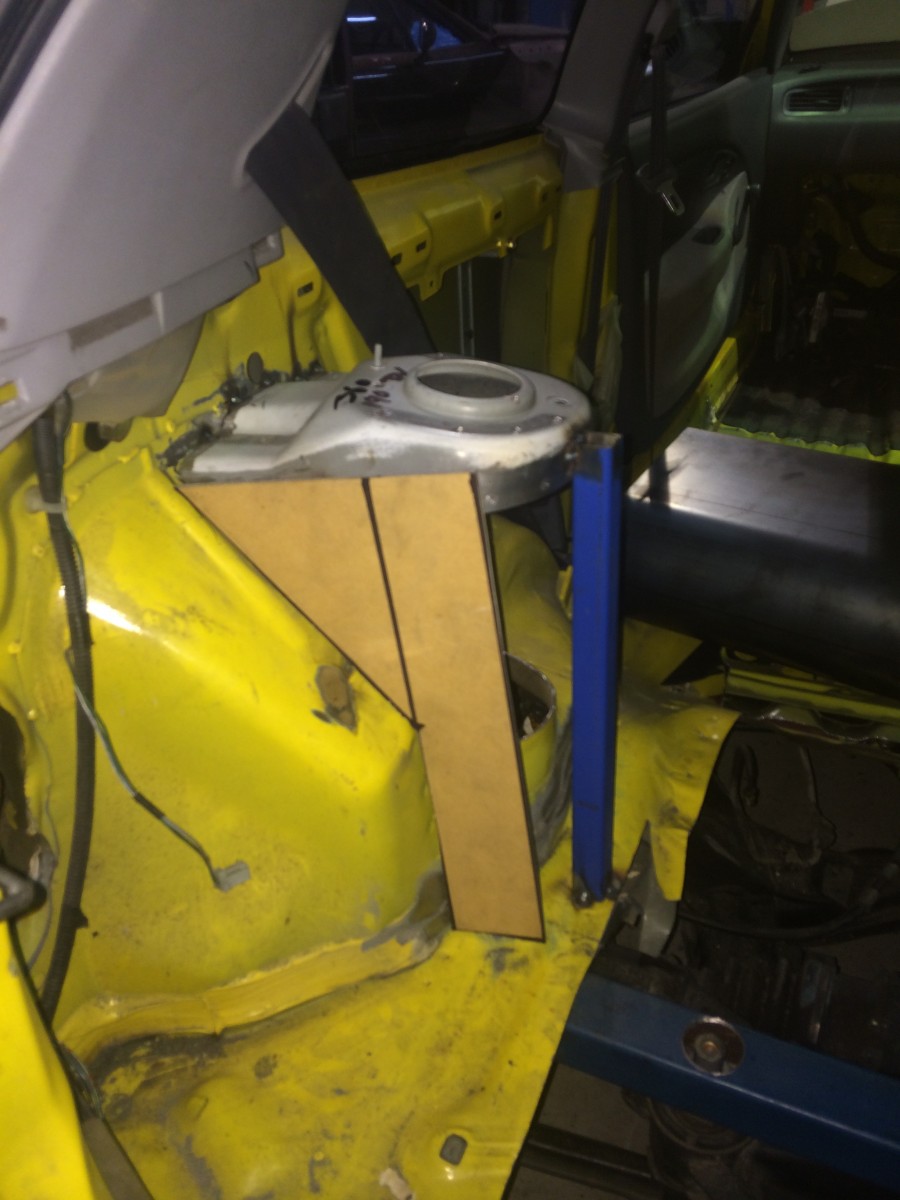 To get the towers matching up with the body, we made wooden templates to match the shape of the Civic. Once we make 2 for each tower it was time to mold and shape the towers in place.