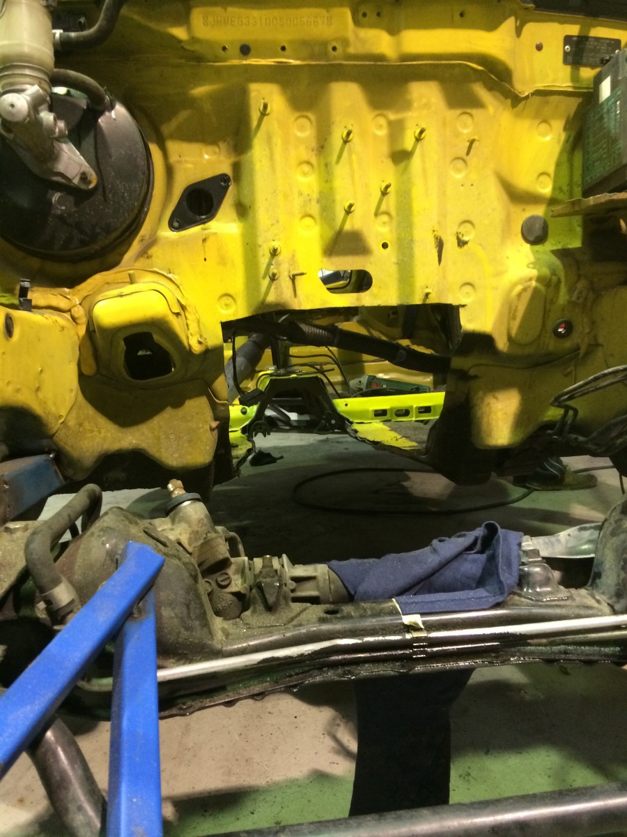 We wanted to retain as much of the firewall as possible, but the most important factor was making sure the motor sat in the cradle in the factory position, a common mistake people make when doing something like this is moving the factory mounting position forward to fit the motor, this changes the weight of the front end and can drastically change the way the car handles and feels. (blue tubing is simply there it hold the shape before we secure everything in place)