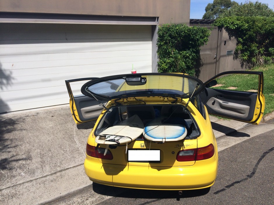 Over the past 5-7 years we have noticed the price of these motors increasing as the popularity of engine swaps increase, we are finding Supra motors in everything from 6 second drag cars to “Seen better days†drift cars, the same can be said for every “hero†motor from the car builders world wide. Don’t even get us started on LS swaps.  Not wanting to be left out of the engine swap craze, We wanted to build something that would make people rethink what can really be done with the right setup – planning and be stupid enough to even attempt it. First we needed a car, Luckily there was an EG civic in Canary yellow sitting in our garage that was used as a suitcase/surfboard rack amongst other things.