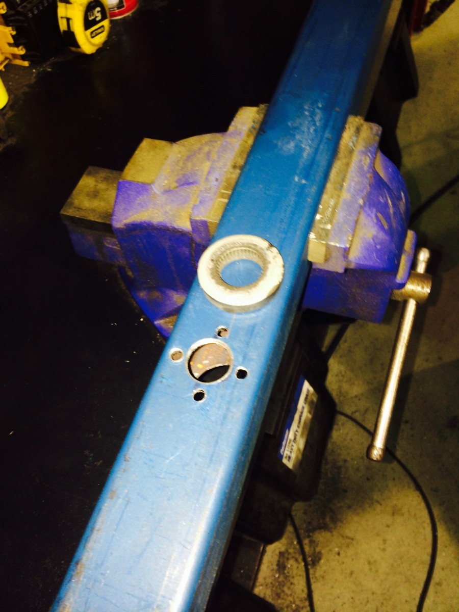 Once the front part of the cradle was in, it was time to focus on making the mounts for the top pins… It made it a lot easier to do with a big hole in the floor.