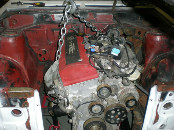 I am interested in doing a similar engine swap, Honda B series into a mini circle track race truck. What transmission and bell housing will bolt to the Honda engine? I am also limited by rules to a single carb. any suggestions? There is not a lot of info out on Honda swaps, all help is much appreciated