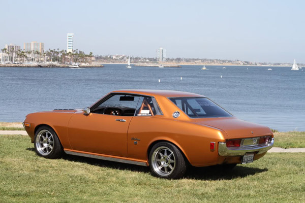 As far as cross breeding goes, I’d say this is pretty subtle. An F20C 2.0L from a Honda S2000 gets transplanted into a 1973 TA22 Toyota Celica. That classic Japanese shape reflects the golden years of JDM styling, while the contemporary heart hailing from a different manufacturer – yet the same country of origin – showcases just how far 4cylinder technology has developed. The owner has managed to capture the best of both worlds, old and new, without going so far as to make a Frankenstein out of the car.