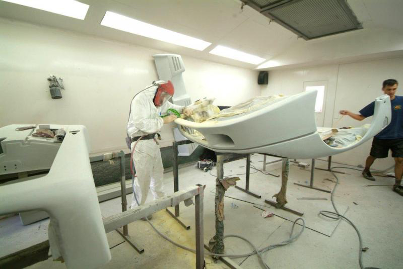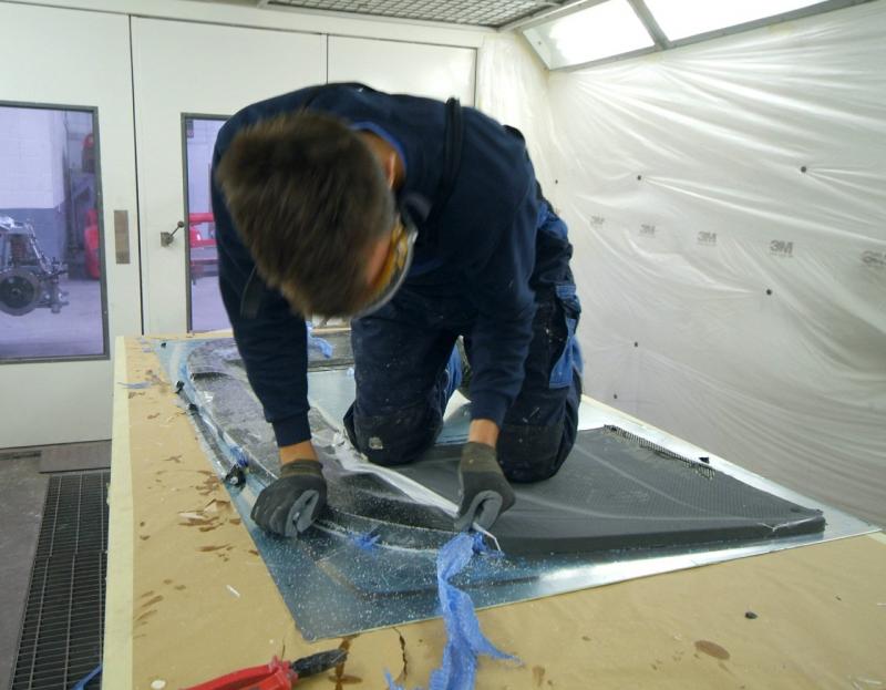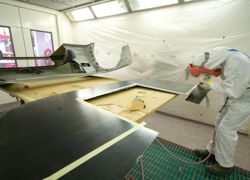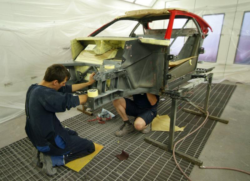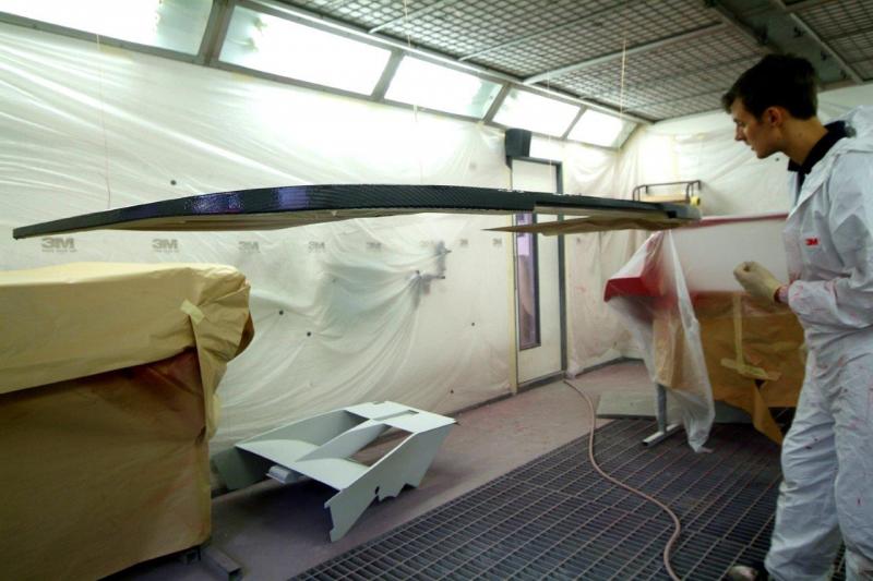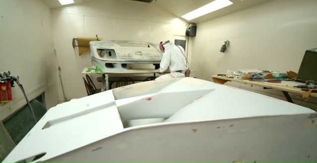 Time for a break from the rear suspension and into the paint shop. Panels undergoing their final prep and then first coats of colour before the clear coat. Side panels are on the critical path so they will be finished up first as we hope to get them fitted as a next milestone. Front clam still in final prep and will be the last panel to get colour, still needing to have further ductwork fitted which can only be done once our radiator is in position as, yet again, clearances are tight.
