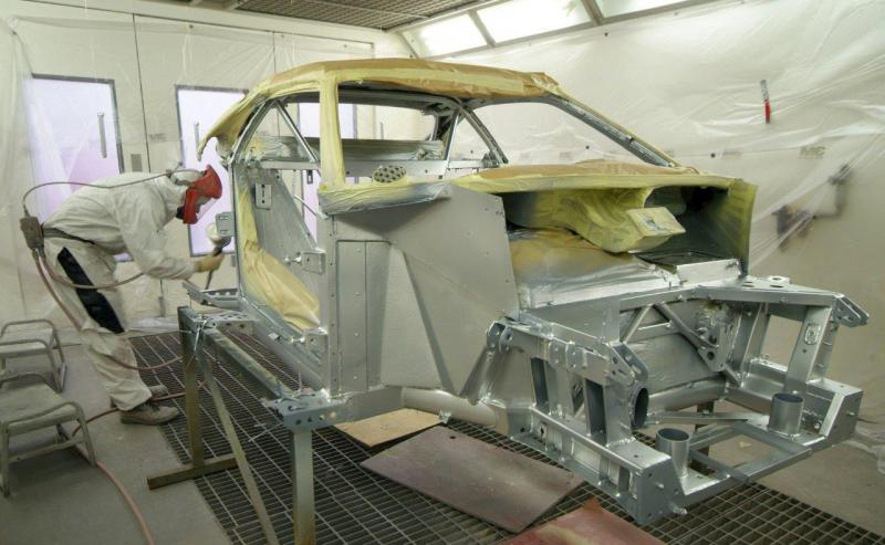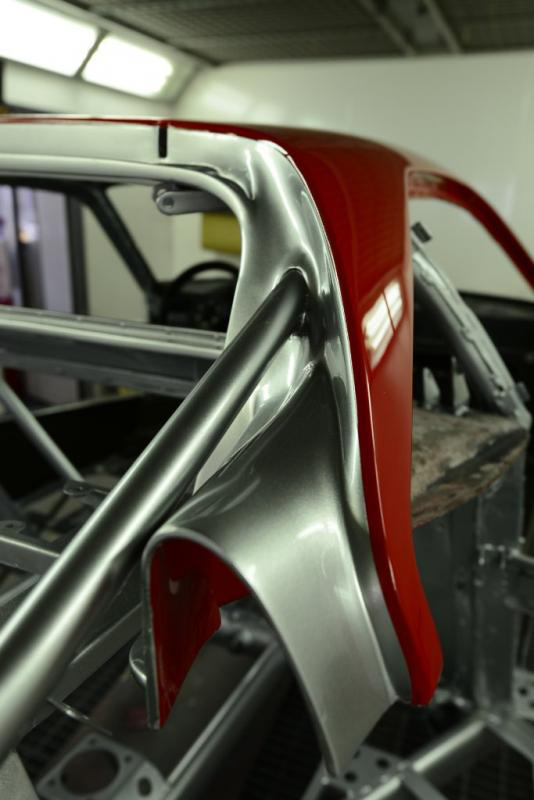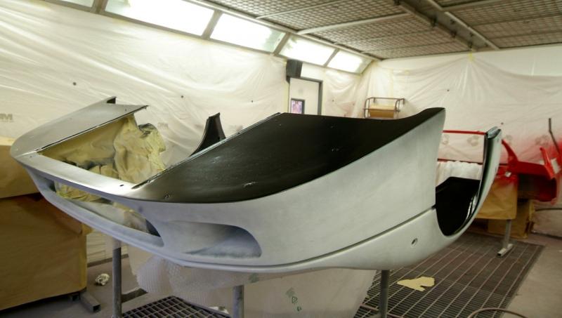 I know I said no more shades of grey but then black does not really count and this is veritably last stage pre-colour. The front clam and air conveyor is finally in the paint shop and colour will be in the gun Wednesday signalling another major milestone as the bodywork is then just about done. Here you can see the first coat of black on the wheel arch area and clam underside