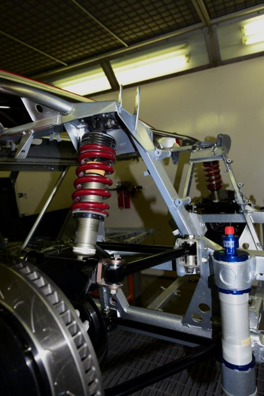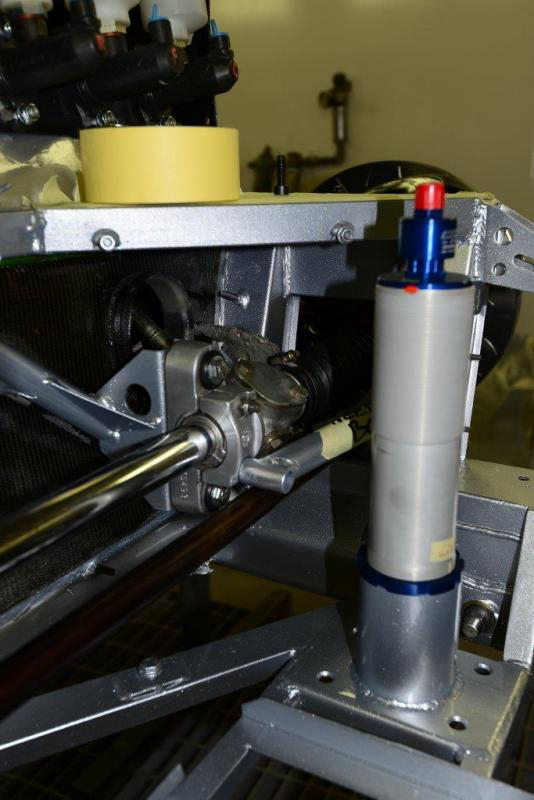 Front jacks now on, rear to follow later today. Note the little additional support from the bottom of the steering rack to the frame and also we now have the Michelotto front anti roll bar mounted just beneath.