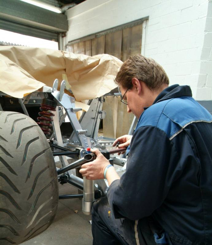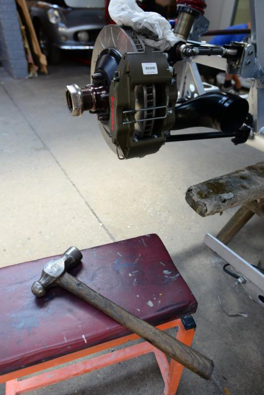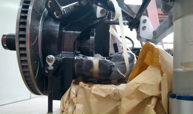 And now the rears. In answer to an earlier question from NurScud, the jack mounting position may have moved very slightly-not much room back there as the anti roll bar has to also fit.Monday will give us brakes.