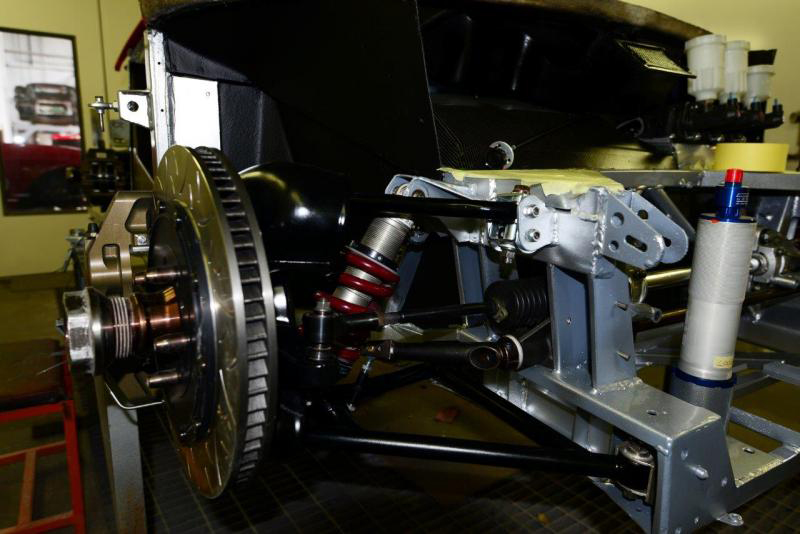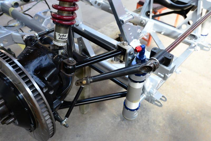 With the rear anti roll bar now mounted you can get some idea of just how tight things get back there with the pick up points and jacks. Interesting geometry going on with the links.