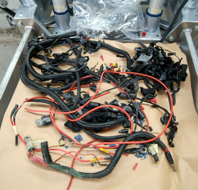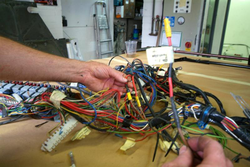 OK, game over and well spotted Mike, took over 200 views before the bell went off! They are actually the drums off a Tour De France that is in there for a rebuild and the boys were just messing around-shows how braking has progressed.Meanwhile a bit of work on the wiring loom, boring, not very photographic but very essential, all dodgy connectors replaced and questionable wiring sorted, all rebound and now ready for installation.