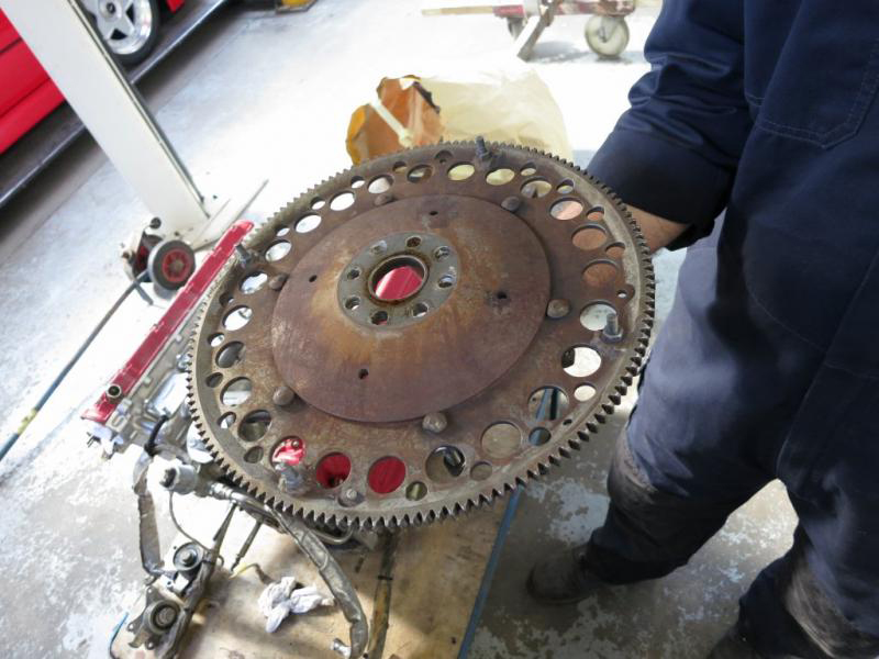 Well, after a few months and much discussions on timing pins, Postie (UPS) finally delivered our new lightweight flywheel from Nick Beere Racing. Almost identical to the old one but of a higher quality and strength and with more accurate timing pins to be able to take advantage of the Motec engine management system and give us far more accuracy and control than what we had before where the timing pins were actually rattling in their locations (You can just see them held in place by bolts on the first shot). The new version is also the same weight as the outgoing version.Behind, just visible, is our new clutch, and together make up just about the very first few pieces of our restored drivetrain.