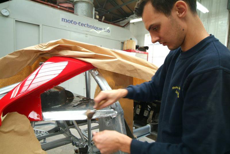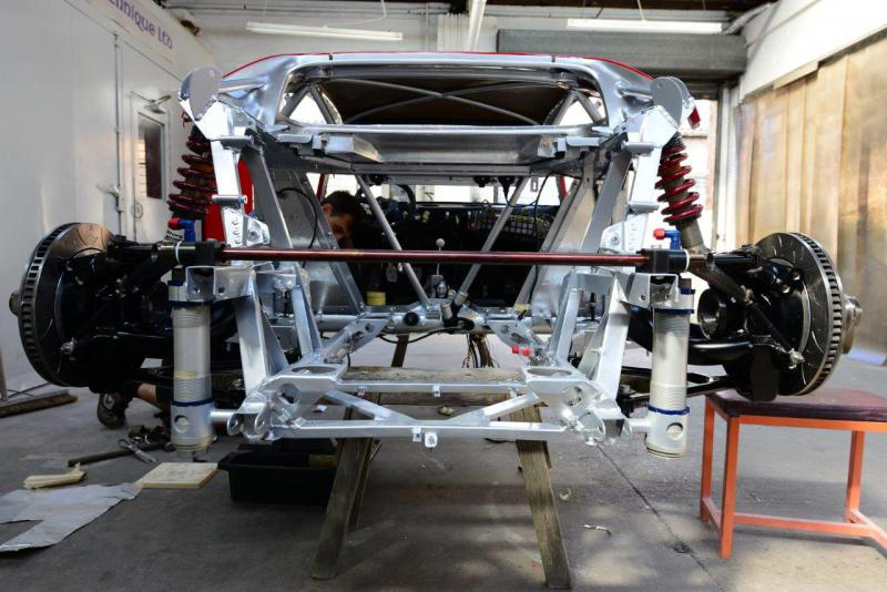 The first ‘hit’ of 5 days of major progress. Up until now either we have been stripping everything, preparing the chassis, bodywork, having replacement items manufactured off site but finally now we can try to bring all the elements together and start to fit them for hopefully the last time.Frame is now finally in silver, not just any silver but a paint whose code took endless, and I do mean endless, calls to Michelotto to reveal, and it is indeed a rather wondrous colour with a lustre that will be seen later this week. When seen against the Rosso Corsa, it is quite stunning. Typically Italian to pay such attention to the aesthetics.Meanwhile all the suspension has been stripped down to their individual component parts, and is in the process of being primed and painted as, being race parts, they were not really suitable for road use in their naked, unprotected condition. Tomorrow, we start to reassemble ready for installation.So the plan this week is silver today, suspension painting and reassembly tomorrow, and then all being well start to mount on the chassis Wednesday.