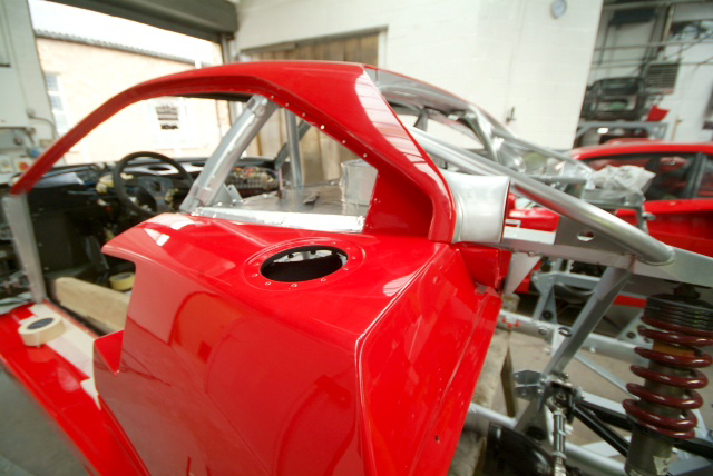 Yes, finally, after a tortuous journey, the front clam and air conveyor is changing colour. Same process as before, spray, rub down, finer and finer, polish etc etc, so absolutely no orange peel. This is halfway through the process so next clam post they should be flawless. Always seems very frustrating the time it takes to get the paint on as so much time has been spent in prep and dry fitting everything so that it all goes together smoothly for real. Hopefully. Photos don’t really do the red justice so I will be down later in the week to photograph.Very tempted to fit the bodywork just to gaze at where we might soon be for real.