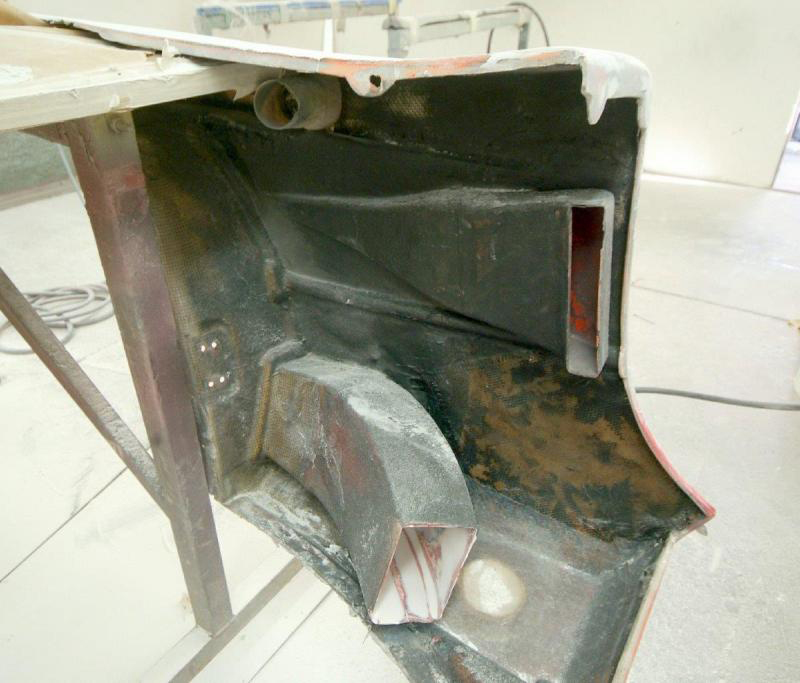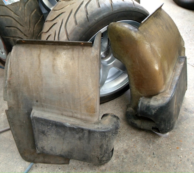 Getting there with our new wheel arches. I am posting the before shots again, which already appear earlier on another page, so you can easily appreciate the difference. Startling.For those who may not be aware, the main side duct in the cill draws air which is channelled around the wheel arch in a plenum whence part of it is bled off through the small round tube into the wheel arch to balance the low pressure whilst the rest goes on to the rear brake duct. They had chosen to do some pretty weird mods.More exhaust suggestions please guys. Duskybird, I noted in my post that my Motec gear will handle that change so that should not be a concern. I am advised that even with turbos it could be too noisy.