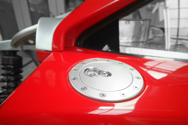 Fuel filler caps now fitted. All the windows are Perspex with the exception of the windscreen but were all in a sorry state. The rear screen is being renewed in Lexan as that was beyond redemption but all the side panels have now been buffed up, the frames repainted and now actually fitted. Nice to have elements being fitted for real, not just for trial.