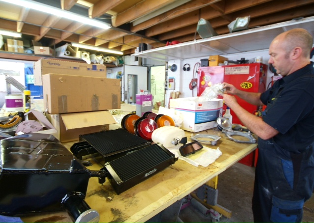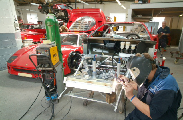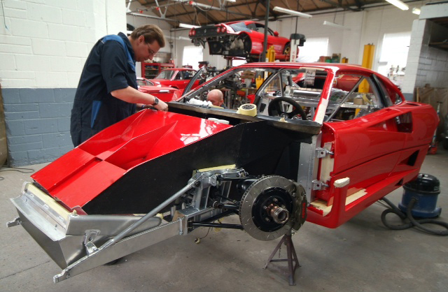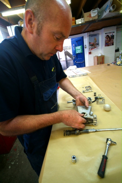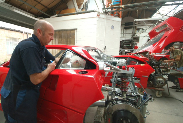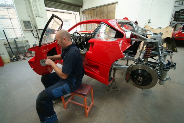 A nice shot of our block and Colin overhauling and rebuilding some engine element which I cannot identify (standard F40 in the background, not mine!). Any ideas?
