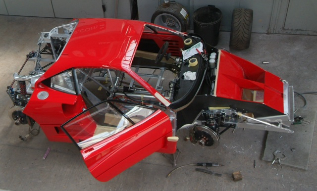 Revealed. Visited the shop today and the red is perfect 300/12 Rosso Corsa, deep and beautiful, the one with the least orange albeit does not show well in the pics.Masking off now the roof and pillars are in colour, finishing to be done later. Next up we strip the suspension and front assembly, yet again but for the last time, and start wrapping up my present in preparation for chassis paint. This is a moment I have been waiting 6 long months for.This is the last time the car will look a mess. Silver by Monday and then a big week next week…..