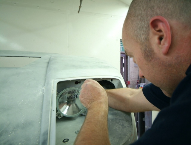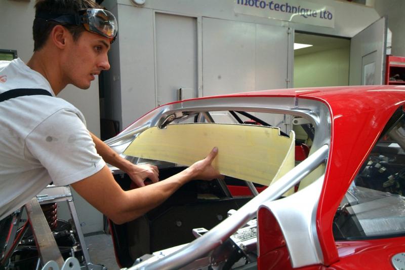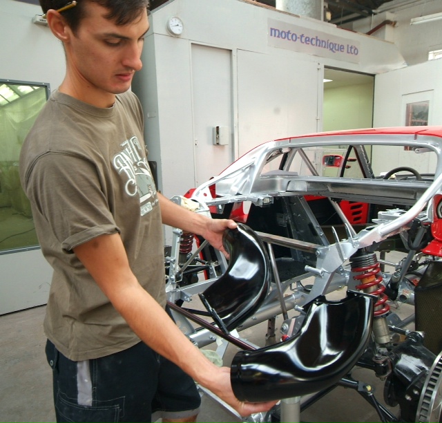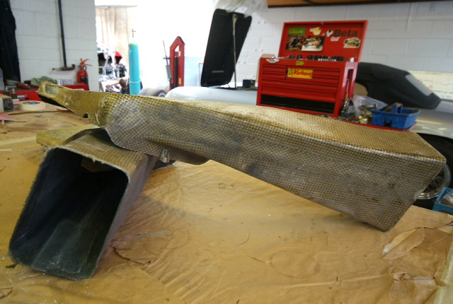 The insatiable James just fine tuning the Italians best efforts and adapting the rear LM brake ducts so they line up perfectly with the rear inner arches and so less prone to stress and failure. After slicing them in half, he inserted a shaped plug of cheap insulating foam, refitted them to the car and aligned them properly. Then he rebonded them together in situ and once cured will be removed and shaped prior to paint The difference was small, but no point building in a weakness if we can avoid it.