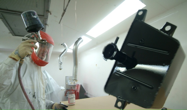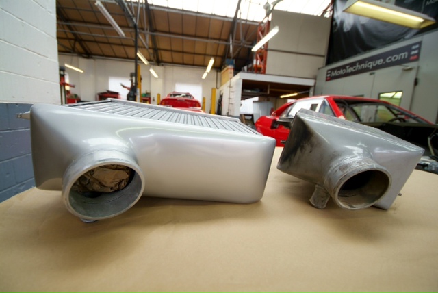 Whilst I ponder a small update on another element undergoing restoration, the intercoolers. These have been flushed with petrol to clean the internals and here James is prepping, masking and finally the finished product. The last image shows our restored one next to a standard F40 and it will be no surprise the ours provide approximately 50% more cooling area.