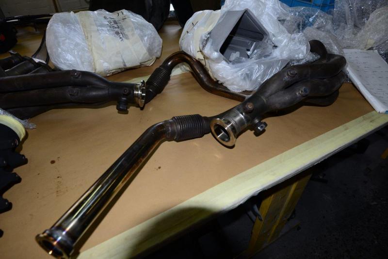 3. Being contemporary, they offer much reduced lag and are more reliable due to their dual ball bearing construction.In short, more efficient, more reliable, more powerful, less lag. Sounds good to me.Most important though is their track record, and we have support from a team currently running two of these LM’s and they in turn have support from Garrett. No other manufacturer was interested so either we had to start from square one developing code or even if we decided to revert to a single wastegate IHI system (which departed too far from the interesting and individual history of this particular car in our opinion), with it could come reliability issues and then where do wet get the code for the Motec gear? Again we wanted reliable power and a proven route with minimum developmental risks so Garret was the logical choice and a natural evolution of where we were.We are keeping our old bespoke exhaust manifold system, cleaning it up and then Zircotecing it to make sure more heat comes out of the back of the car than into the engine bay, and also keeping all the old turbos etc so if my heirs had a real hard on for originality, they could be refitted-meanwhile I want drivability and reliability. So, in short, still staying true to its racing heritage, unusually still running twin wastegates with its original manifold system, but just brought up to date for a better and more reliable driving experience. A comfortable compromise we think.We have also had the exhaust side of the turbos Zircipotec finished, so as to try and maintain as much of the exhaust gas heat inside which can apparently markedly assist spool up. You can see the different finish in the pics.Not great photos I am afraid but better will follow when we really turn our attention to them.