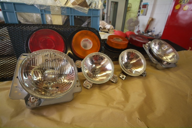Windscreen being checked to make sure all heating elements are OK. Now sprayed Chassis X bar check fitted (makes life even more difficult when you have to treat the chassis like finished bodywork) and finally a few more ancillaries making their way off the restoration line. Headlights all cleaned up, rear lights all remounted in newly finished grilles.Tomorrow will being a change of emphasis as we finally begin to turn our attention to the engine which has been spread across the countryside until recently and is now all starting to come home to Mototechnique. The start of another major milestone, so long awaited.