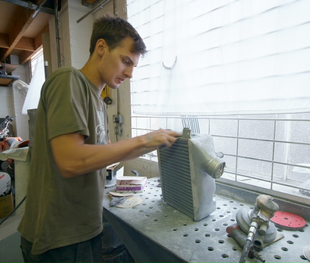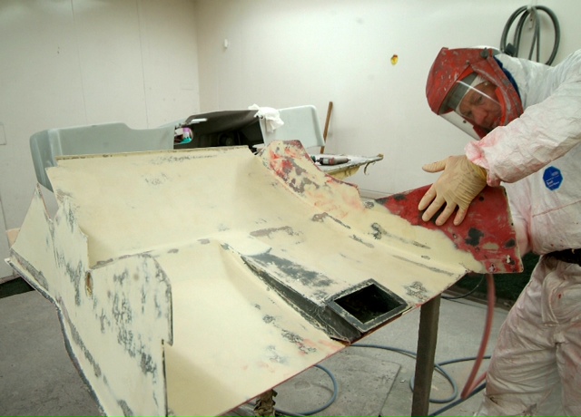 Second shot shows one of the very last parts of the rear clam, the screen, being polished up.