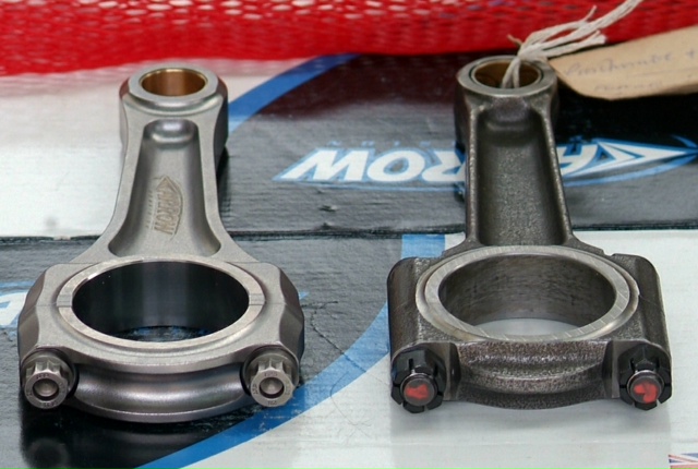 We now have most of our newly balanced crankshaft assembly back. Flywheel, clutch, titanium rods, crankshaft and block. Evidence of some oil issues on the old rods.The bubble wrapped package is our newly polished and balanced crankshaft.