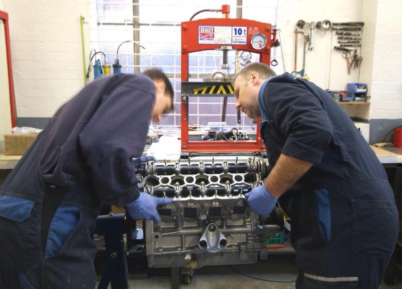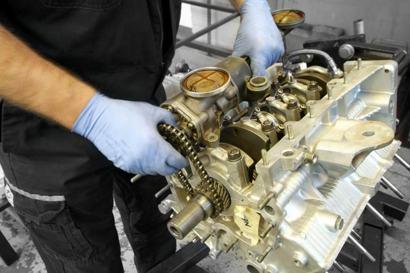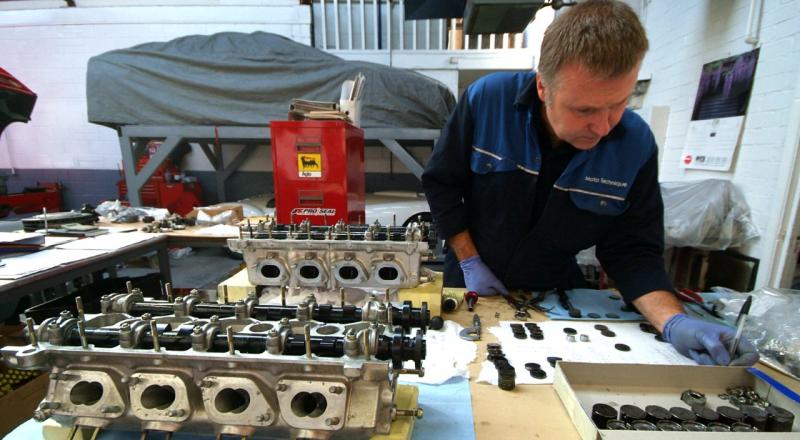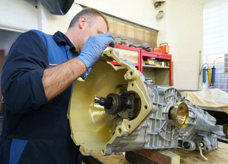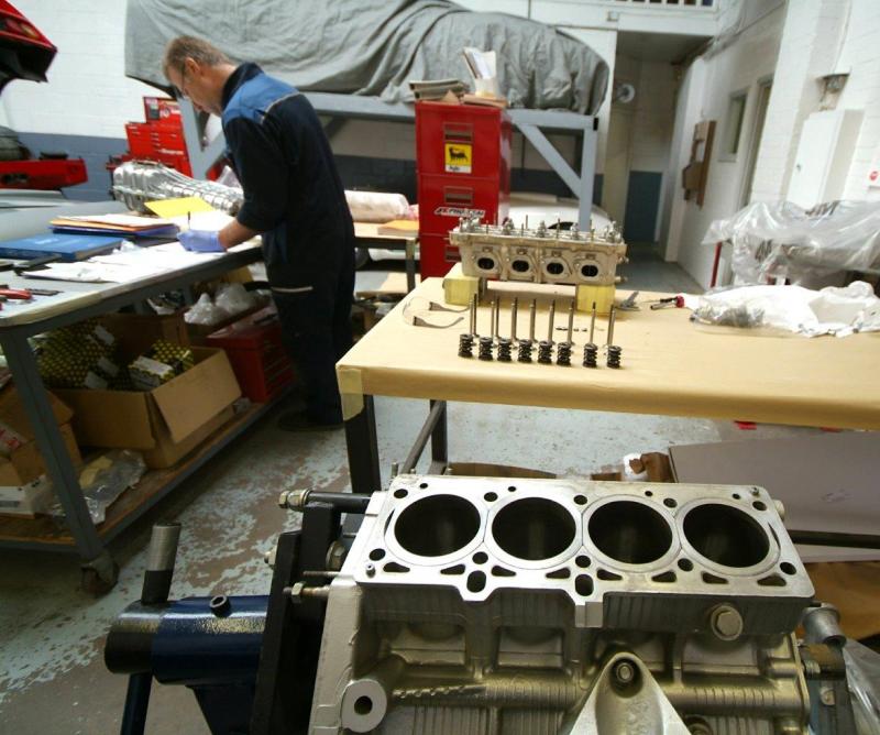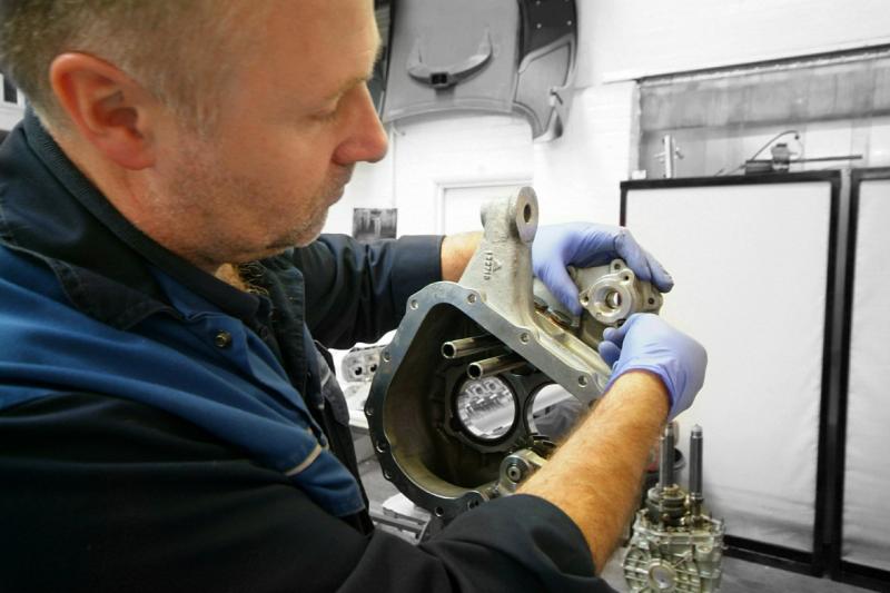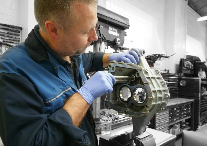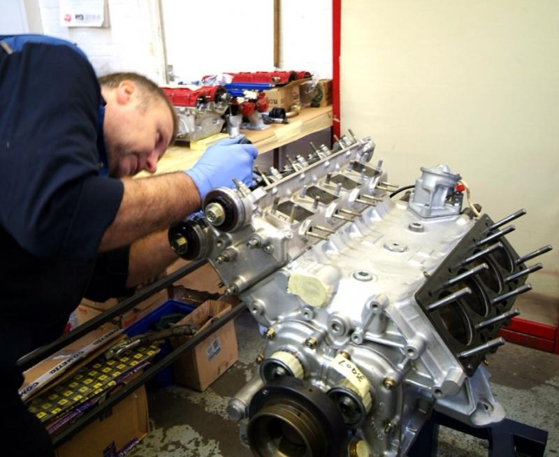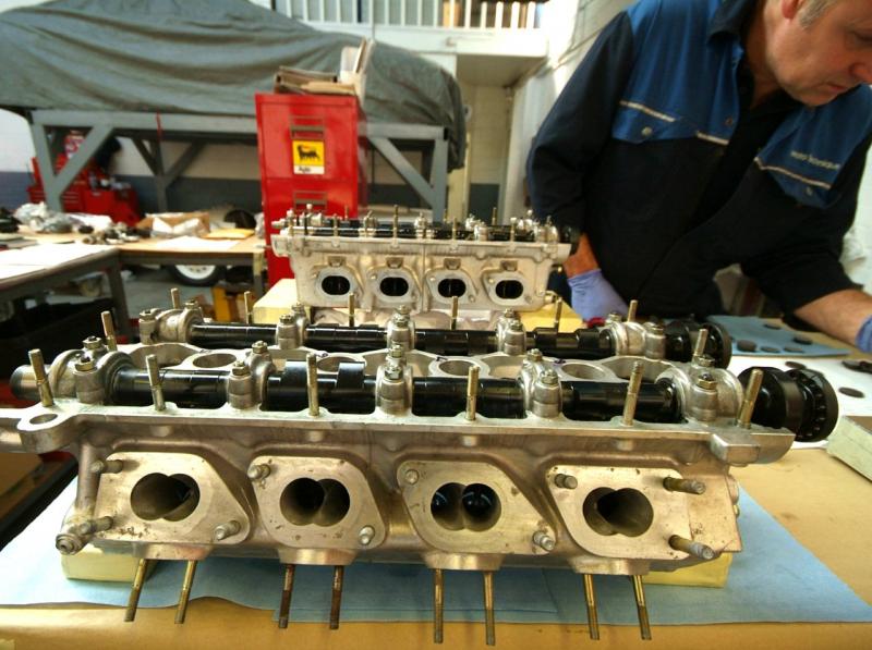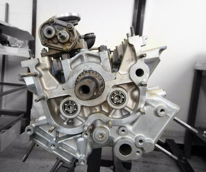 Here you can see the front timing chest being built up with new bearings and seals as well as an interesting shot under the front clam showing how the high pressure air duct runs from next to the radiator to the wheel arches etc.