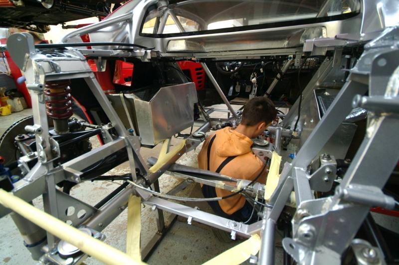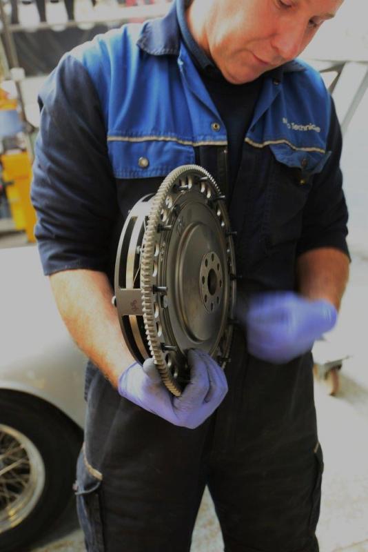 Colin pressing the clutch release bearing onto it’s carrier, our balanced clutch and lightweight flywheel and a few general shots.Please pay no attention to panel gaps as all these will need to be adjusted when the engine is in and the chassis under load.