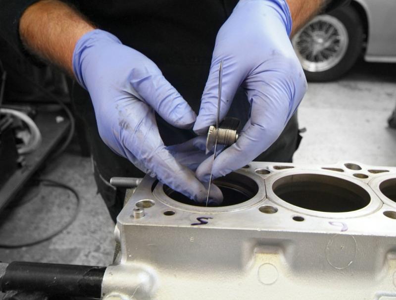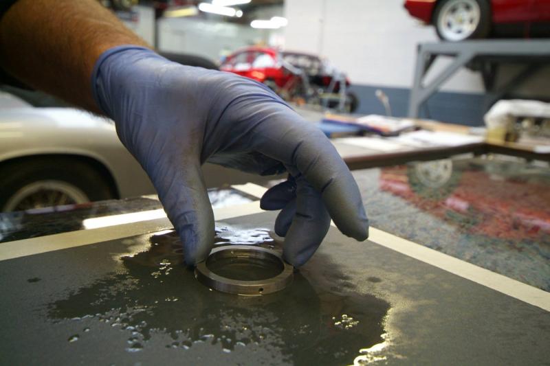 Ouch! New piston rings arrived, along with HT leads and gasket set. Do you guys get robbed in the States same us and why is it that everything ex Ferrari has a disproportionate price tag and is not easy to get your hands on? Dumb question-they’ve got it and you want it. Rumour has it that Classiche has warehouses of spares so they can promise their customers instant availability but for the rest of us it is never that simple. Keeps the business rolling in for their restoration department.Anyway, I digress, a few shots of setting up the selector shafts and checking and adjusting the end gap of those expensive rings